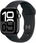Apple Watch Series 10, 42 мм, алюминий цвет «черный глянец», спортивный ремешок цвета "Black", размер S/M (MWWE3)