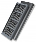 Отвёртка выполнена из алюминиевого сплава и обработана анодным окислением, имеет нескользящее покрытие и вращающуюся конструкцию. 24 насадки обработаны антикоррозийным покрытием и выполнены из сплава S2. Отлично подходят для любых повседневных задач.