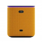 Корпус колонки, выполненный из ткани, не только стильно выглядит, но и обеспечивает приятные тактильные ощущения, защищает динамики и смягчает звук. Встроенный экран светится на текстильной поверхности.